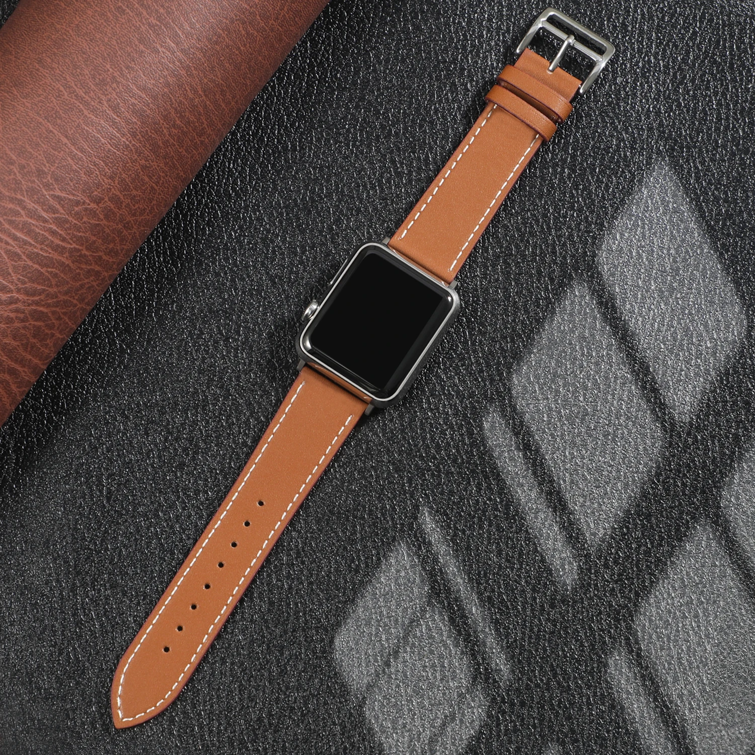 Name: Banda de cuero para Apple watch Correa 44mm 40mm 38mm 42 mm iWatch Serie 6 iPhone 5 4 3 una sola vuelta pulsera correa de reloj de cuero de Apple