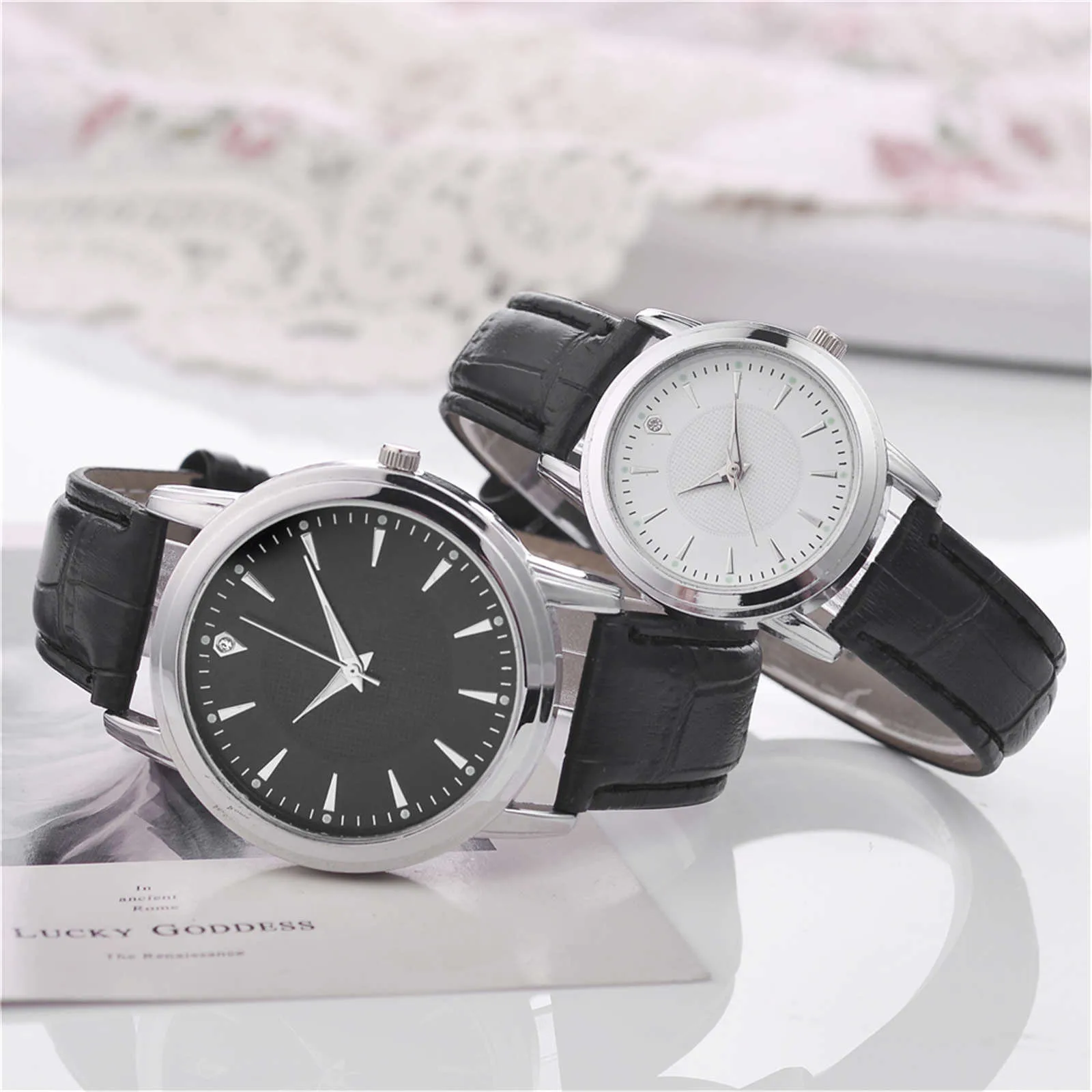 Name: Reloj de lujo para hombre y mujer, 2 uds., de cuarzo, correa de cuero, regalo de San Valentín, Masculino