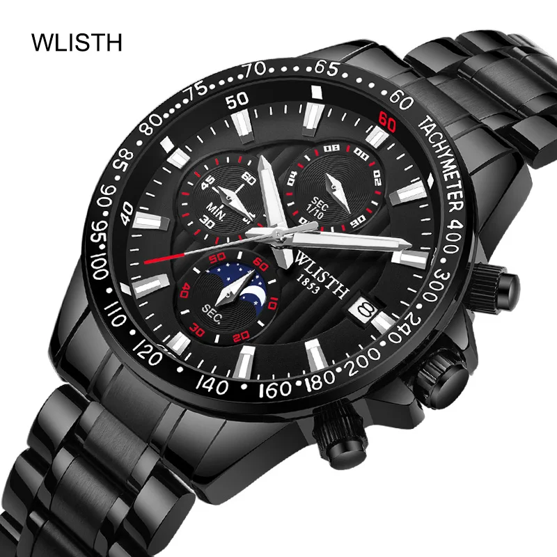 Name: WLISTH-reloj deportivo de lujo para hombre, cronógrafo de cuarzo, de acero inoxidable, marca superior, resistente al agua, nuevo